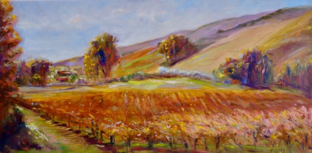 Overlooking the vines at Gloria Ferrer winery. Painted en Plein Air